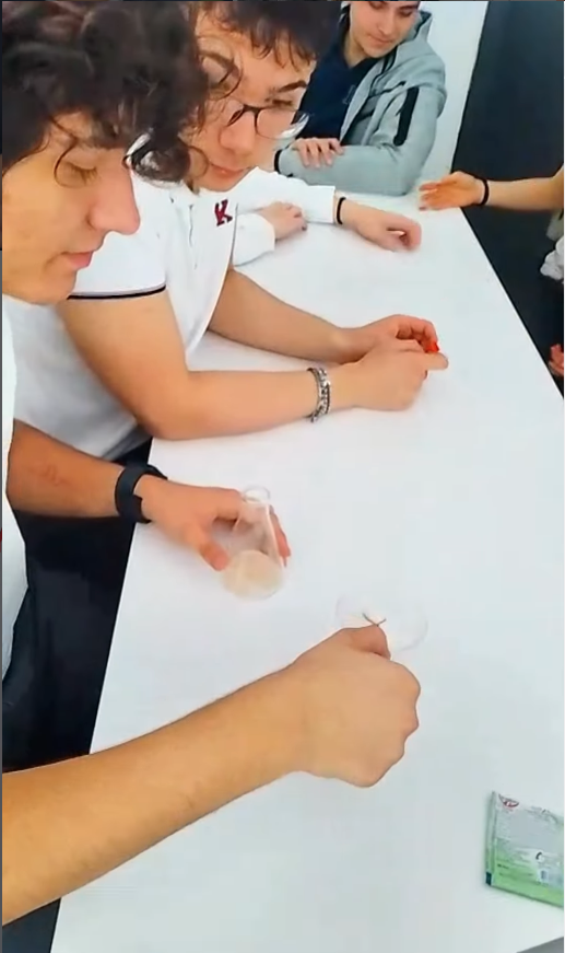TED Karabük Koleji Vakfı Özel Anadolu Lisesi 10. sınıf öğrencilerimiz, Biyoloji dersinde mikroorganizmaların besinleri nasıl dönüştürdüğünü uygulamalı olarak inceledi.